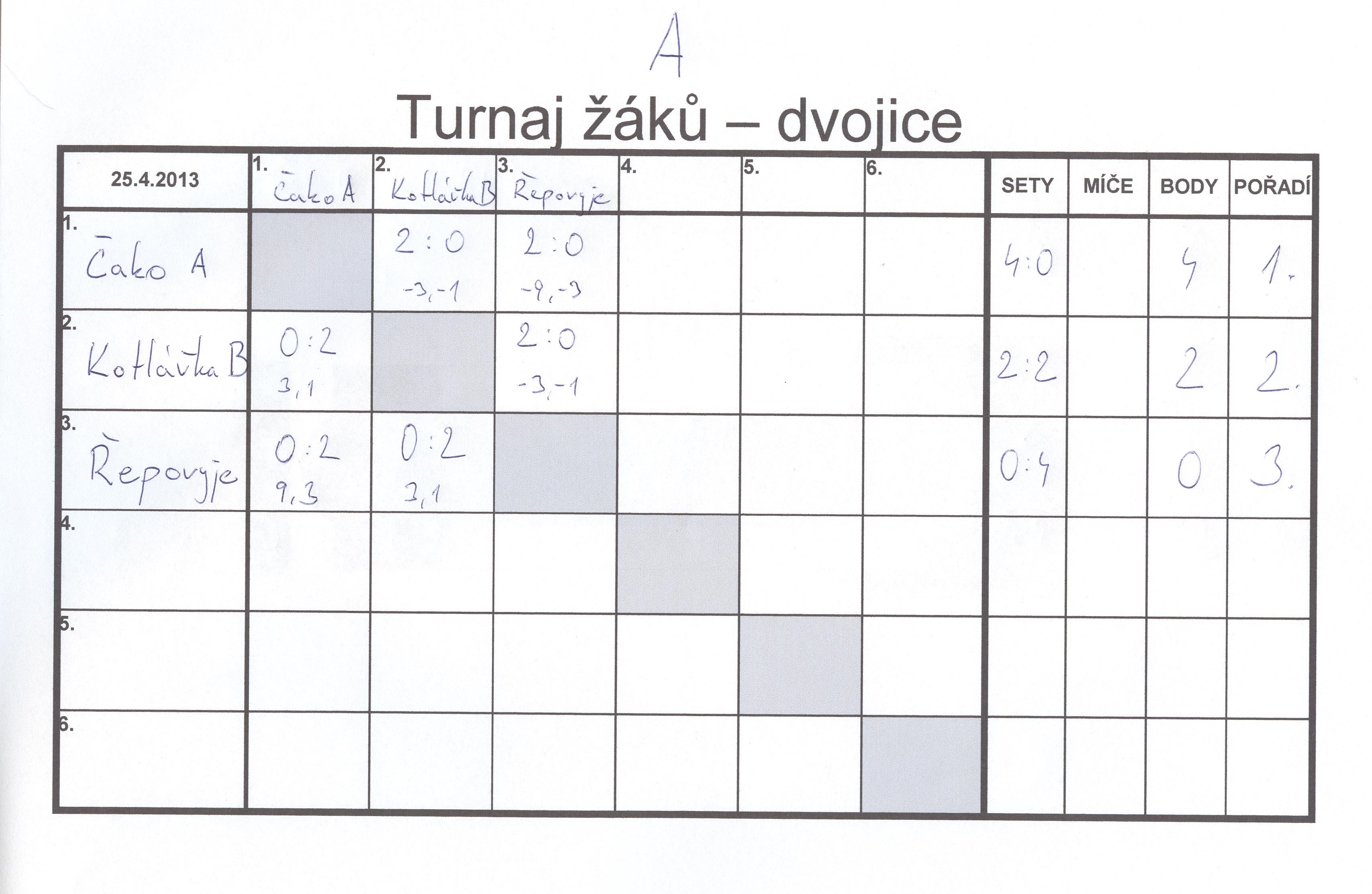 Turnaj dvojic žáků – Řeporyje 25.4.2013